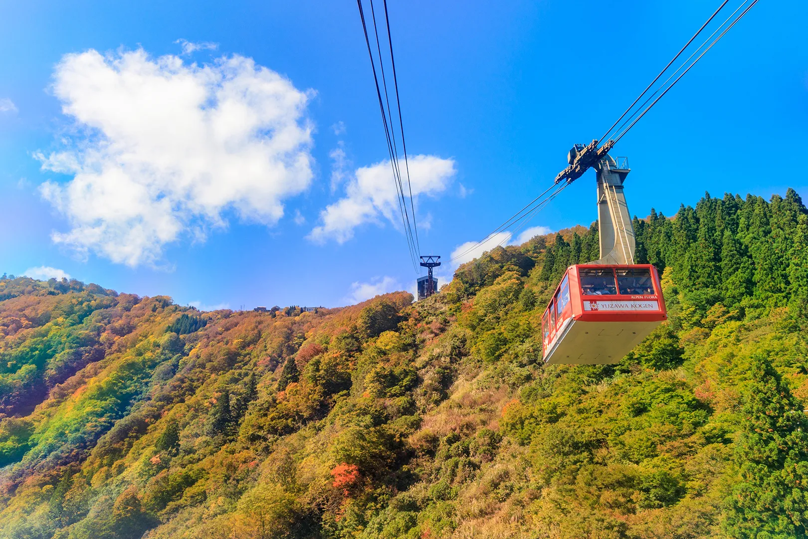 越後湯沢駅から徒歩8分、世界最大級のロープウェイで約7分間の空中散歩