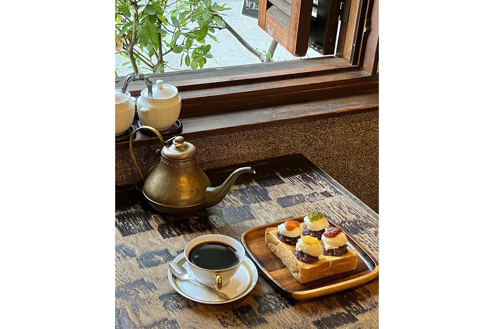 レトロな喫茶店で小倉トーストを楽しむ朝のひととき
