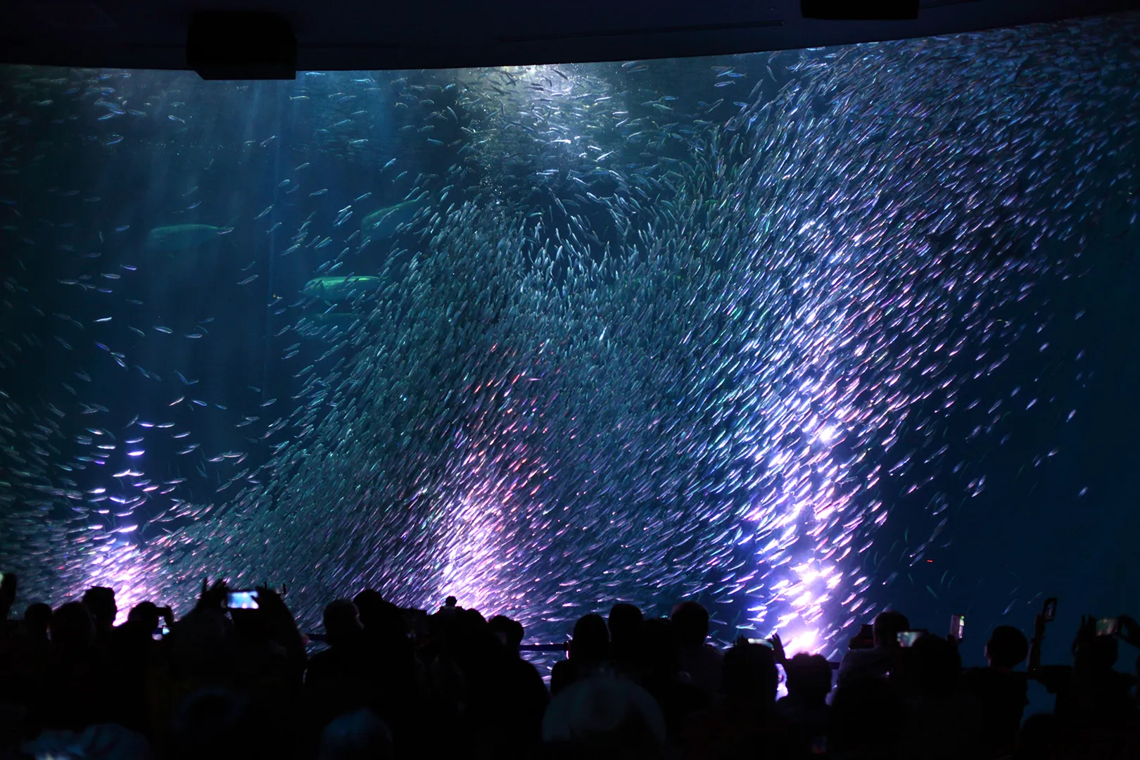 幻想的なマイワシのトルネードショーとイルカショーに癒やされる
