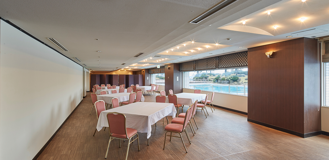 照明、音響、映像装置を完備し、大規模なパーティーやセミナー、