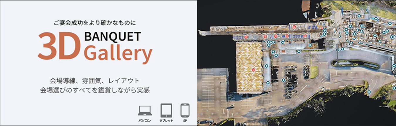 | パーティールーム | 1 | 200㎡ | 14.7m×15.4m | 2.5m | 80名 | 100名 | - | - | - |