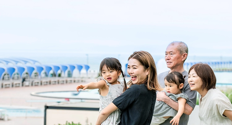 3才以下のお子さまもご利用いただける「温泉(3F)」のほか、4才以上のお子さまは、期間限定でスパエリア(4F)のインフィニティプールやサウナを楽しむことができる「こどもと一緒に絶景体験」を開催。親子で、海を一望しながら癒しのひとときをお過ごしください。