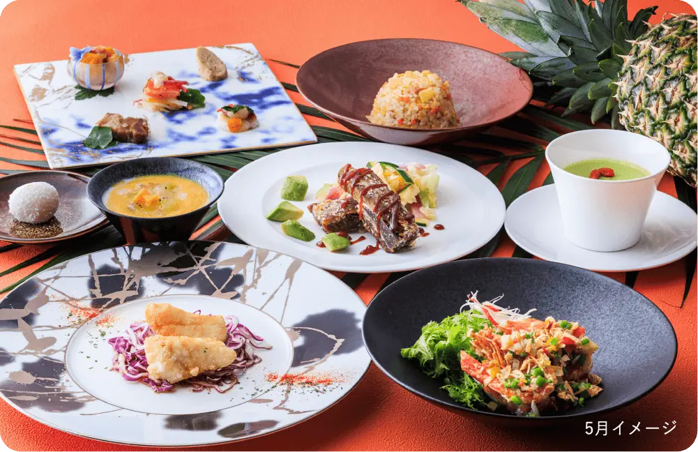 月替わりで季節の味わいを存分にお楽しみいただける料理長のおすすめコース。5・6月は、ハワイで人気のメニューを中国料理 滄スタイルにアレンジした料理の数々をお楽しみいただけます。