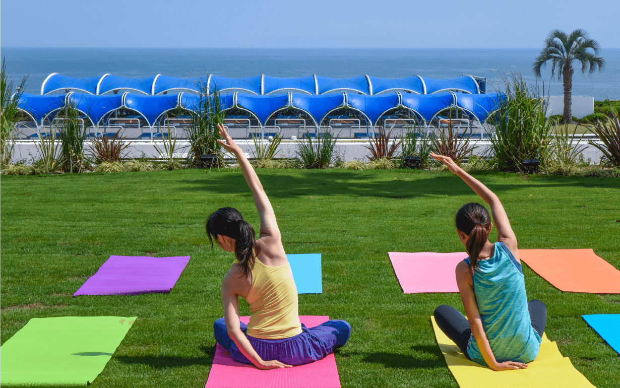 ※表記料金には、1名さまのレッスン料、ミネラルウォーター(500ml)、温泉利用料、消費税、入湯税(¥150)が含まれております。 ※ヨガマットは無料でご用意しております。 ※当日は動きやすい服装でお越しください。 ※雨天・荒天の場合は中止させていただきます。実施可否は、前日5:00P.M.に決定いたします。 詳細・ご予約はこちら受付 THERMAL SPA S.WAVE スパ受付(スパ棟3F) 場所 ガーデン(スパ棟1F 屋外) 時間 8:00A.M.~9:00A.M. 料金 1名さま ¥2,000