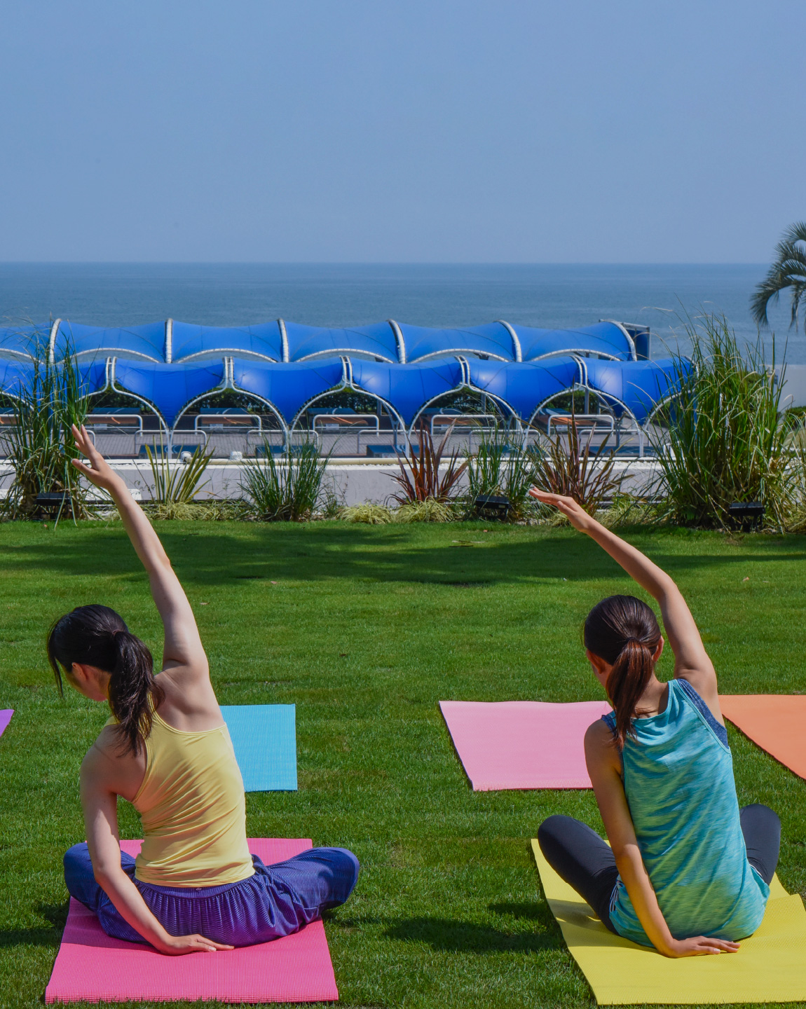 相模湾を臨めるガーデンで心地よい海風を感じながら、ヨガやピラティスで気分もリフレッシュ。朝のひとときにおすすめです。