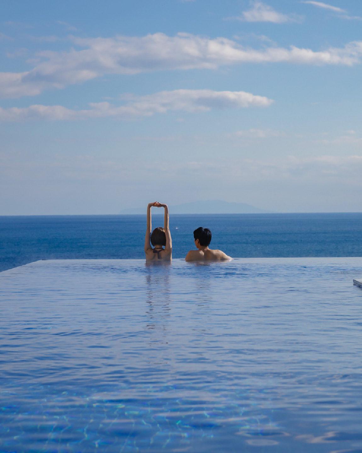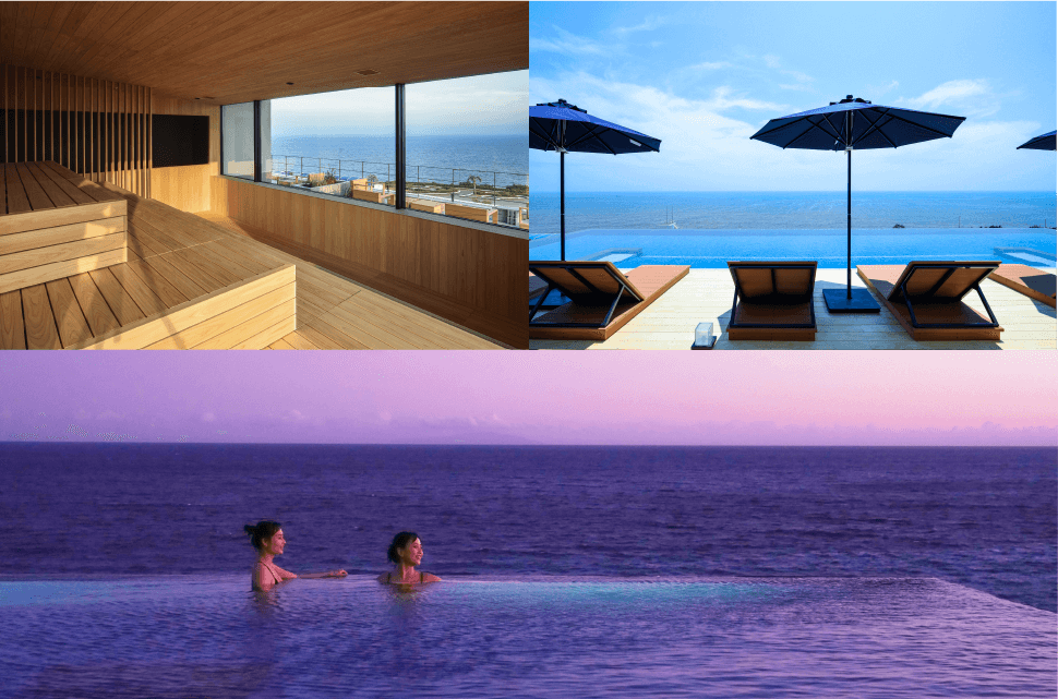 ⽔平線と⼀体になったような圧倒的な浮遊感を体験できるインフィニティプールをはじめ、温度帯の異なる4種のサウナ、アロマのシャワーなどをお楽しみいただけます。