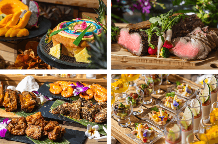 ハワイからインスパイアされたメニューをお楽しみいただけるセミブッフェ。選べるメイン料理と、お好きなだけお召しあがりいただける前菜・サラダ・デザートを、ヤシの木が並ぶガーデンを眺めながら、リゾート気分でお楽しみください。