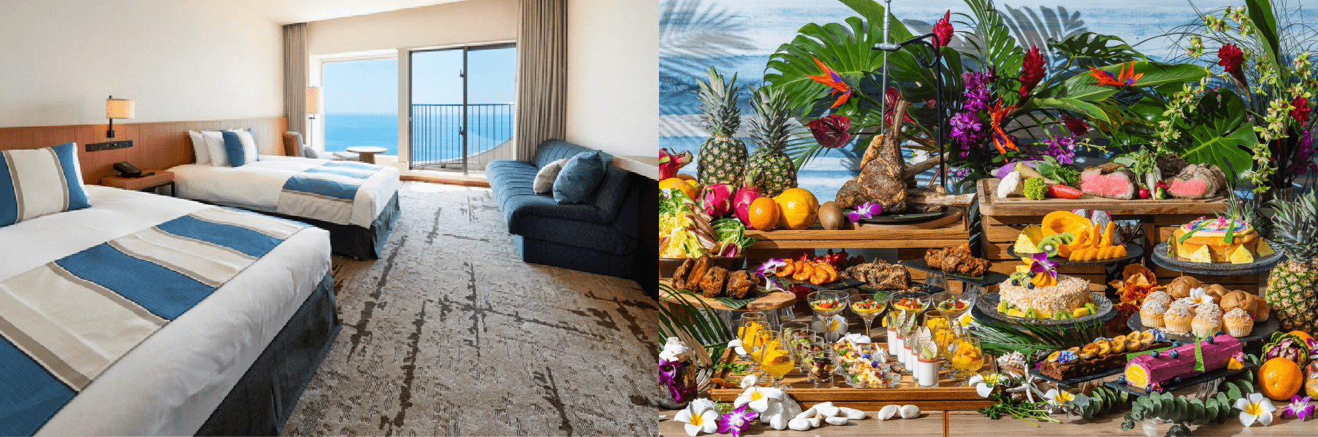 湘南シーサイドリゾートでハワイ気分を満喫!ハワイアンメニューをはじめ、シェフによるパフォーマンスメニュー、和・洋・中・お子さまメニューが充実の「ハワイアンディナーブッフェ」が付いたご宿泊プラン。ゴールデンウィークの思い出づくりにいかがでしょうか。