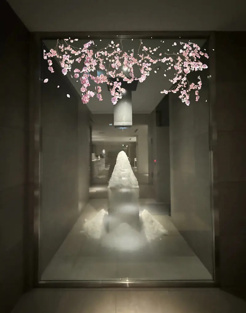 禅の言葉よりインスピレーションを受けた作品。海のそばにあった枯木に命を吹き込み満開の桜を、そして、たくさんの人の笑顔も咲かせた、賑やかで生命力あふれる春を演出いたします。