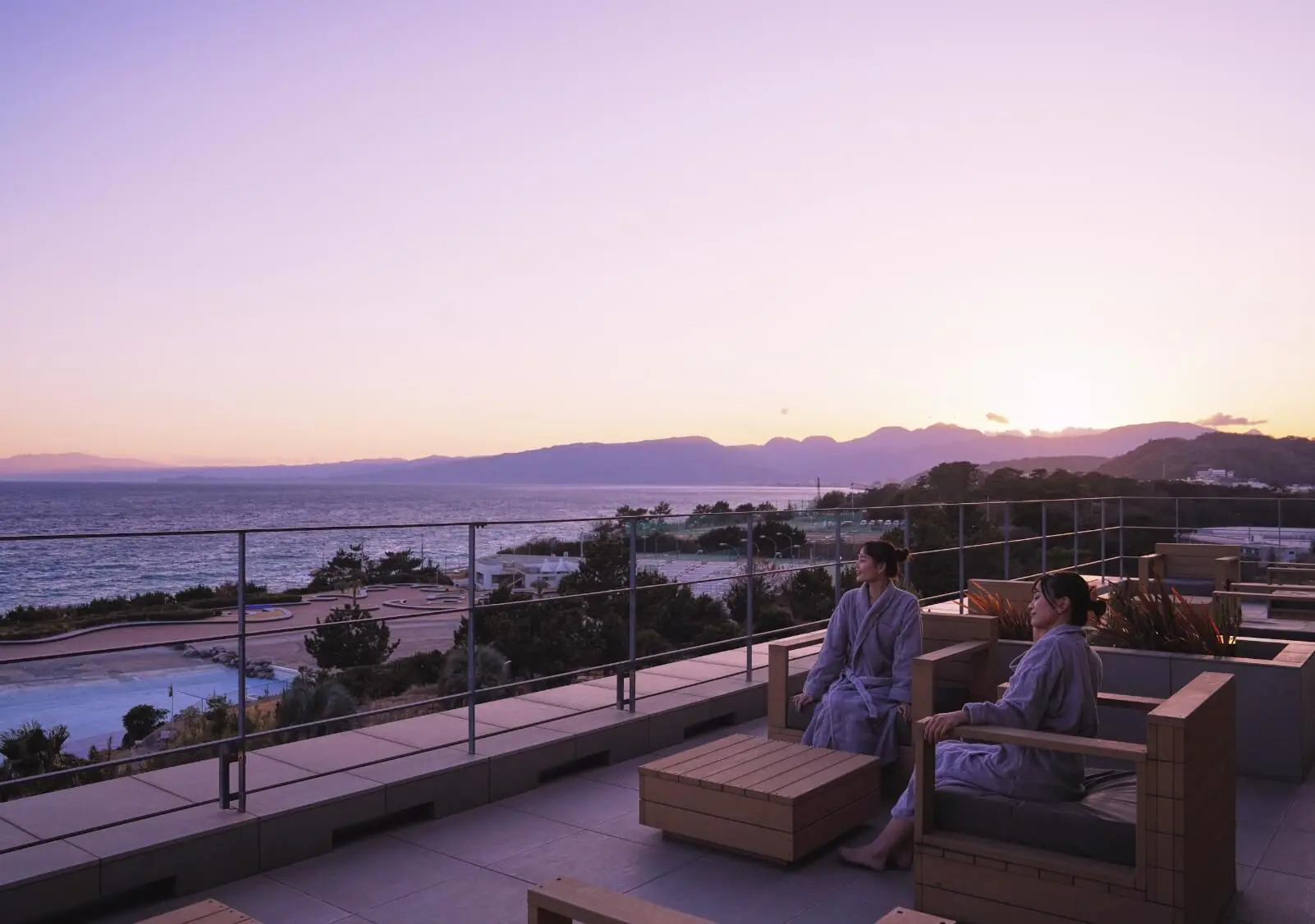 海景色を借景に、昼・夜で趣を変える