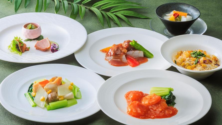 冷菜、料理一~三品目、麺飯、デザートより1品ずつお選びいただけます。