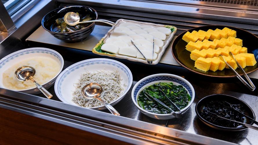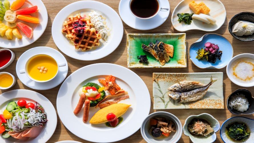 大きな窓から差し込む陽差しで目覚める朝。煌めく海を眺めたあとに食べる朝食は至福のひととき。選ぶ楽しみを満喫できるブッフェスタイルをご用意しております。