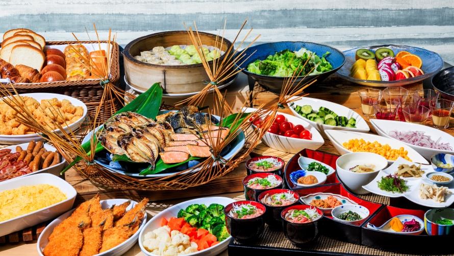 煌めく海を眺めたあとに食べる朝食は至福のひととき。選ぶ楽しみを満喫できる「和・洋・中ブッフェ」をご用意しております。目の前で仕上げるシェフパフォーマンスのほか、4月1日(水)からは、お好みで盛り付けできる「海の幸お好み丼」や、中国料理ならではの朝粥などもお楽しみいただけます。さらに「福岡フェア」開催期間中は、福岡で長く愛されてきた“うまか味”をごはんのおともとしてご用意。福岡ならではの味わいとともに、大磯ではじまるハッピーな朝の時間をお楽しみください。