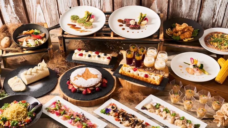 北海道の郷土の味わいを取り入れた料理を、セミブッフェスタイルでご用意。前菜やデザートはブッフェを楽しみながら、メイン料理はお好みに合わせてお選びいただけます。