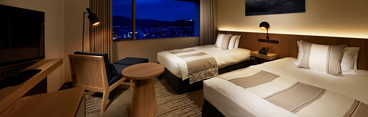 最上階から丹沢の雄大な山並みと大磯の趣ある街並みを一望できるお部屋です。ホテル敷地内に広がる松並木や木立ちを抜ける心地よい風が、開放感あふれるひとときを演出します。