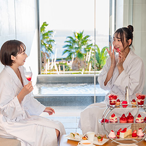 【平日・各個室2名さま限定/予約制|PRIVATE SPAでアフタヌーンティー】1日温泉・スパを楽しみながら、プライベートスパ「FUJI」または「OSHIMA」にてアフタヌーンティーをご利用いただけるプランです。