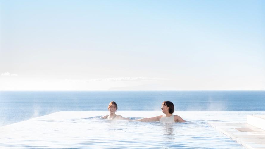 スパ棟の3-4F「THERMAL SPA S.WAVE」では、水平線と一体となり圧倒的な浮遊感を感じるインフィニティプールを楽しんだり、テラスで寛いだり、4種のサウナや岩盤浴をお楽しみいただけます。詳しくは以下リンクをご覧ください。