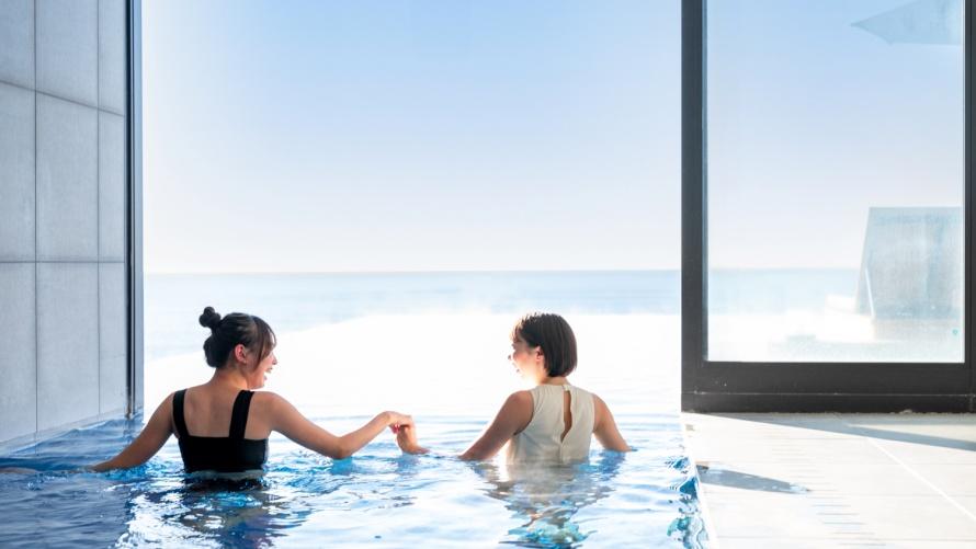 スパ棟の3-4F「THERMAL SPA S.WAVE」では、水平線と一体となり圧倒的な浮遊感を感じるインフィニティプールを楽しんだり、テラスで寛いだり、4種のサウナや岩盤浴をお楽しみいただけます。詳しくは以下リンクをご覧ください。