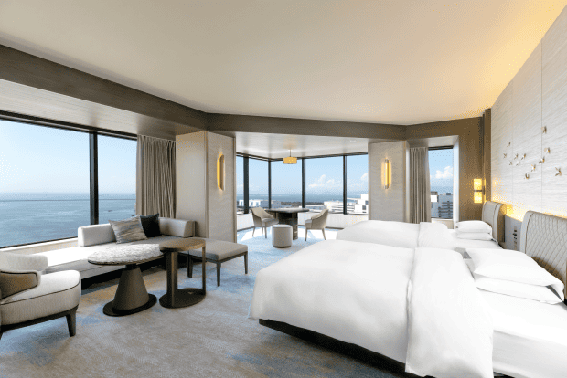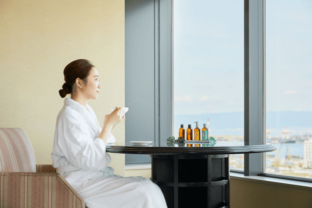 ステイすべて眺めのよい角部屋のクラブプレミアルーム(80㎡)でリラックスタイム。