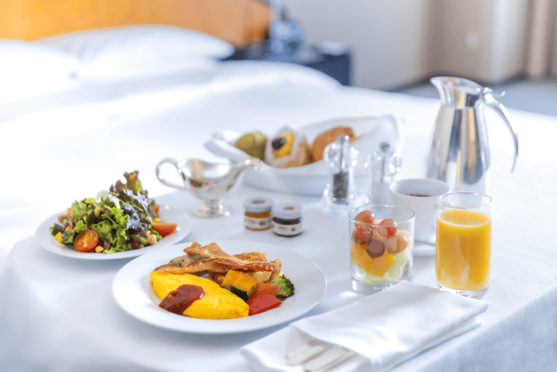 快適な客室でゆっくりと楽しめる和朝食を含む4つのセットメニューからお選びいただけます。