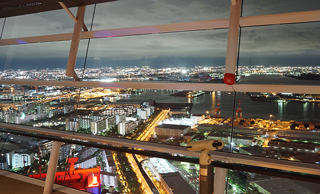 「さきしまコスモタワー」の最上階、地上約252mにある、西日本では2番目の高さの展望台。360˚大阪から神戸、淡路島までを一望し、ここからの夜景は日本の夜景100選にも選ばれています。