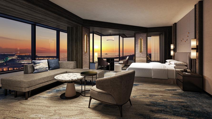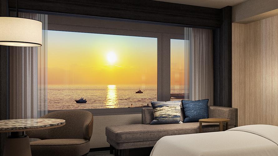 窓から広がる海・空・風、都会にいながら感じる自然。景色を切り取るような窓からの絶景、海辺のアーバンリゾートをより感じさせる客室へ。