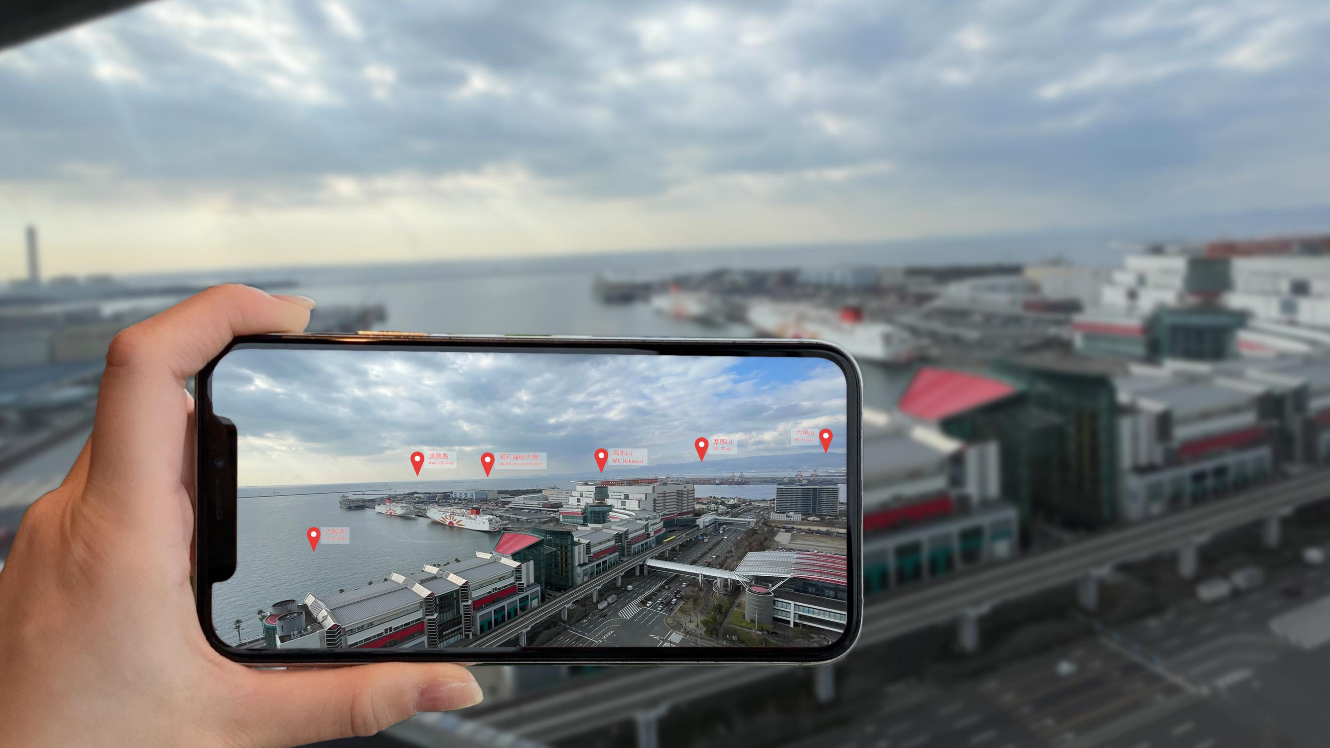展望台のように客室からの眺望を楽しんだり、行きたい場所を見つけたりすることができるなど、ARを使ってランドマークを表示する機能で、大阪近郊への観光をより身近に。