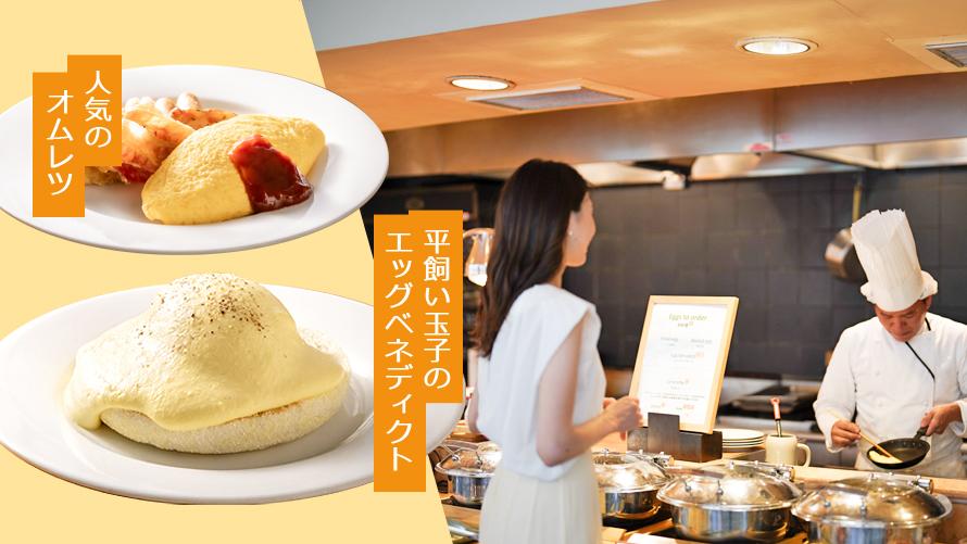 レストランには、ライブキッチンがあり目の前で仕上げる卵料理が魅力の1つ。