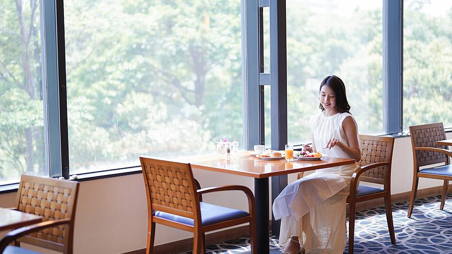 吹き抜けの窓からウォーターガーデンを眺めながら、ゆったりと朝食が味わえます。