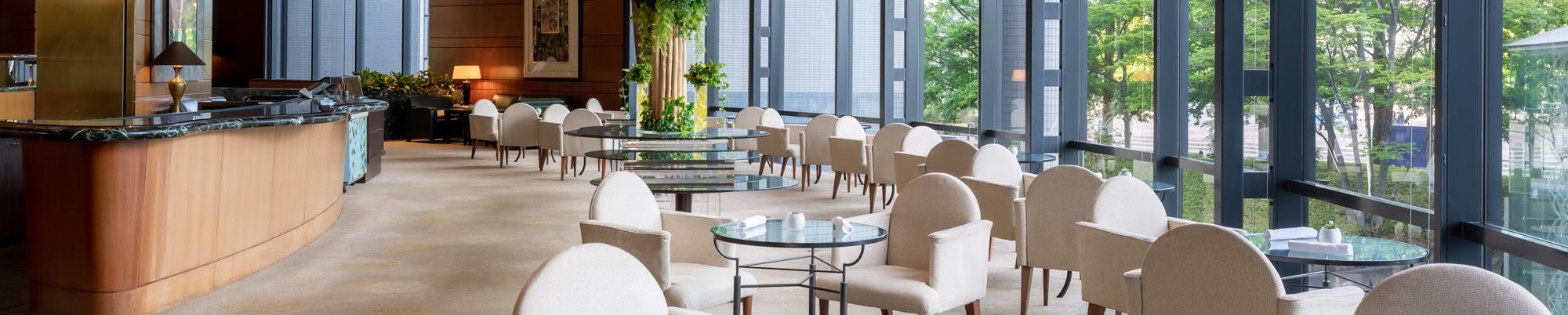 広々とした、居心地のよいロビーラウンジからは屋外庭園とウォーターガーデンの素晴らしい景観をご覧いただけます。薫り高いコーヒーや紅茶でお寛ぎください。