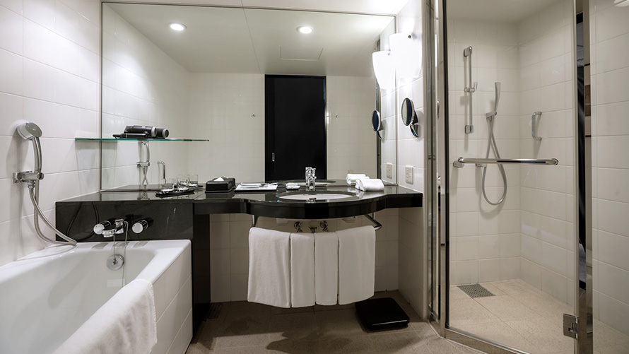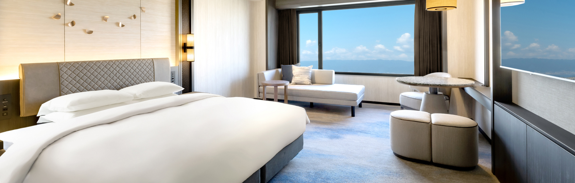 28階クラブラウンジのご利用特典が含まれた客室。40㎡の客室はキングベッドを配し、窓際のソファーではゆったりとくつろいでいただける客室。