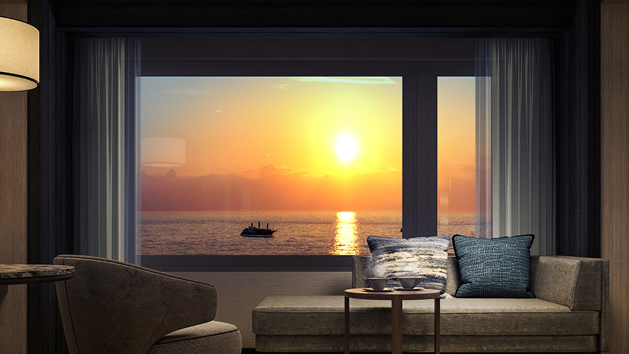 晴れた日には大阪湾の向こうに明石海峡大橋や淡路島を見晴らす40㎡の客室。