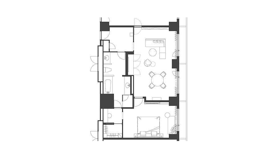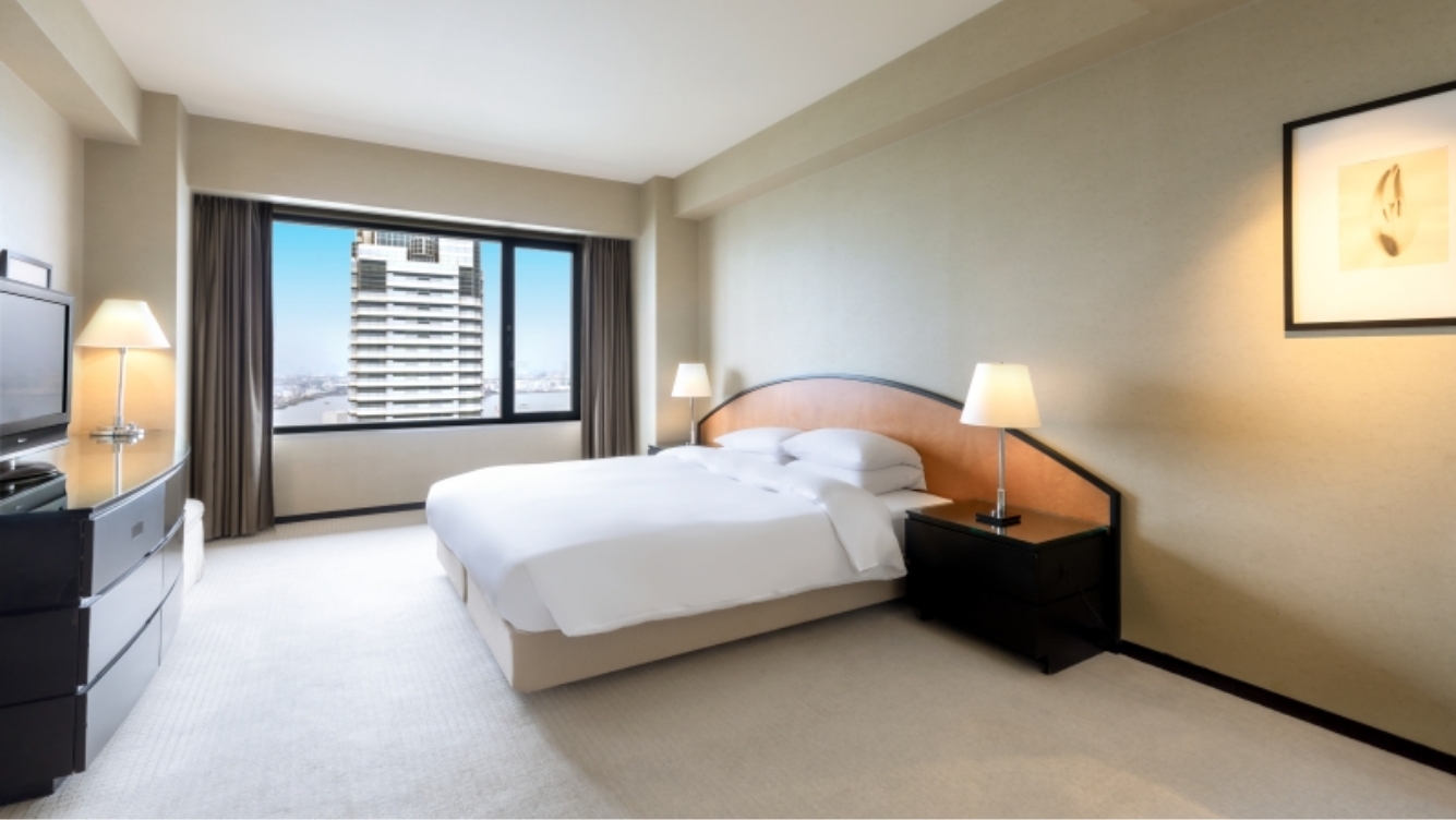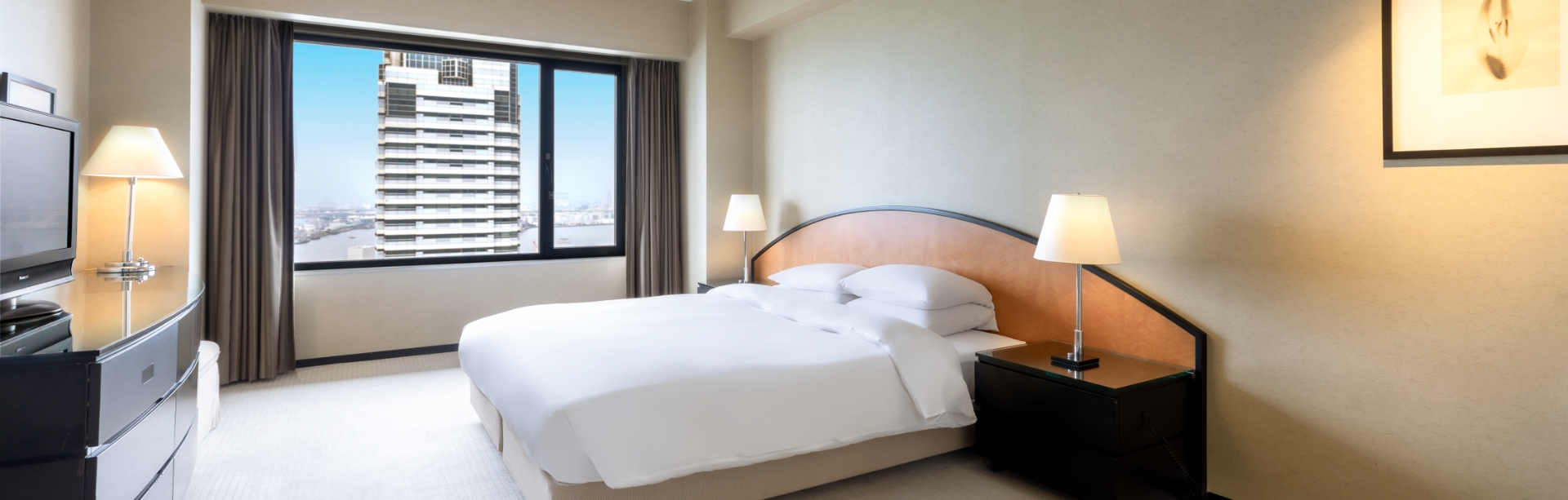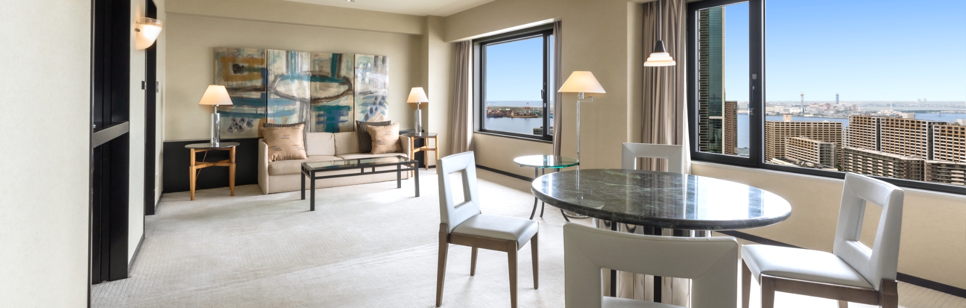 大阪市街とベイエリアを見渡す高層階からのパノラミックな眺めをお愉しみいただける90㎡のスイートへ。