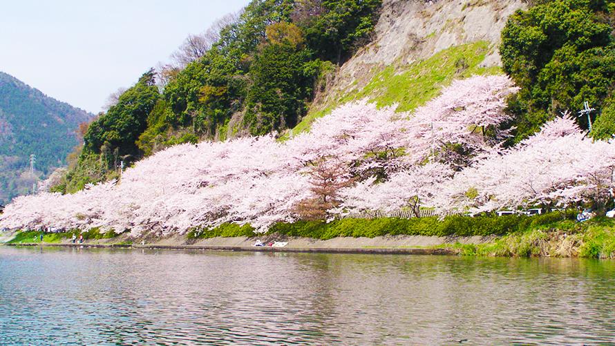 1 年を通じて雄大な奥琵琶湖の自然が満喫できる、快適なドライブコースです。また、海津東口からは自然遊歩道「近江湖の辺の道(おうみうみのべのみち)」が整備され、快適な散策が楽しめます。春は湖岸沿い約4km にわたり桜が咲き、桜花見船がおすすめです。