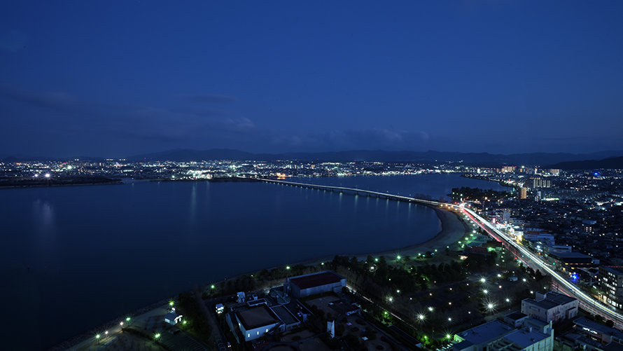高層38階のホテルと国内最大級の規模を誇るコンベンションホール「淡海(おうみ)」を擁するびわ湖大津プリンスホテルが、そのシンボルとして湖畔にたたずんでいます。
