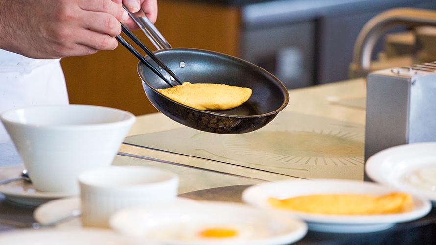 シェフが目の前で仕上げるオムレツをはじめ、日替わりパスタやプラントベースのハンバーグなど、洋風料理が充実した和洋ブッフェをお楽しみいただけます。