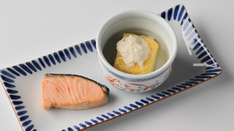 野菜のかき揚げ天丼や料理長おすすめのおばんざいなど和風料理が充実した和洋ブッフェをご用意いたします。日替わりの焼き魚と出汁巻玉子のとろ湯葉餡かけは出来立てをテーブルまでお届けいたします。