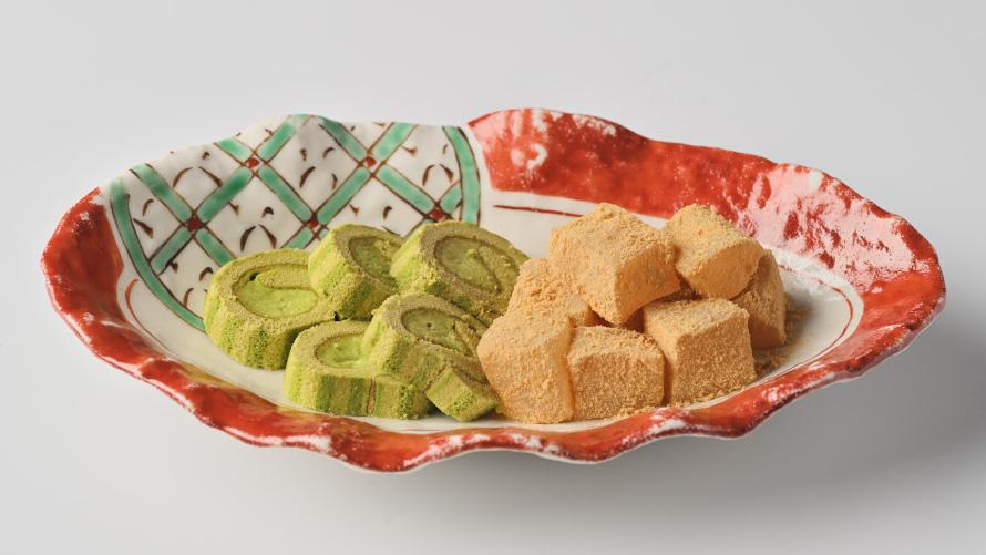 〇 和スイーツ(わらびもち、抹茶ロールケーキ)