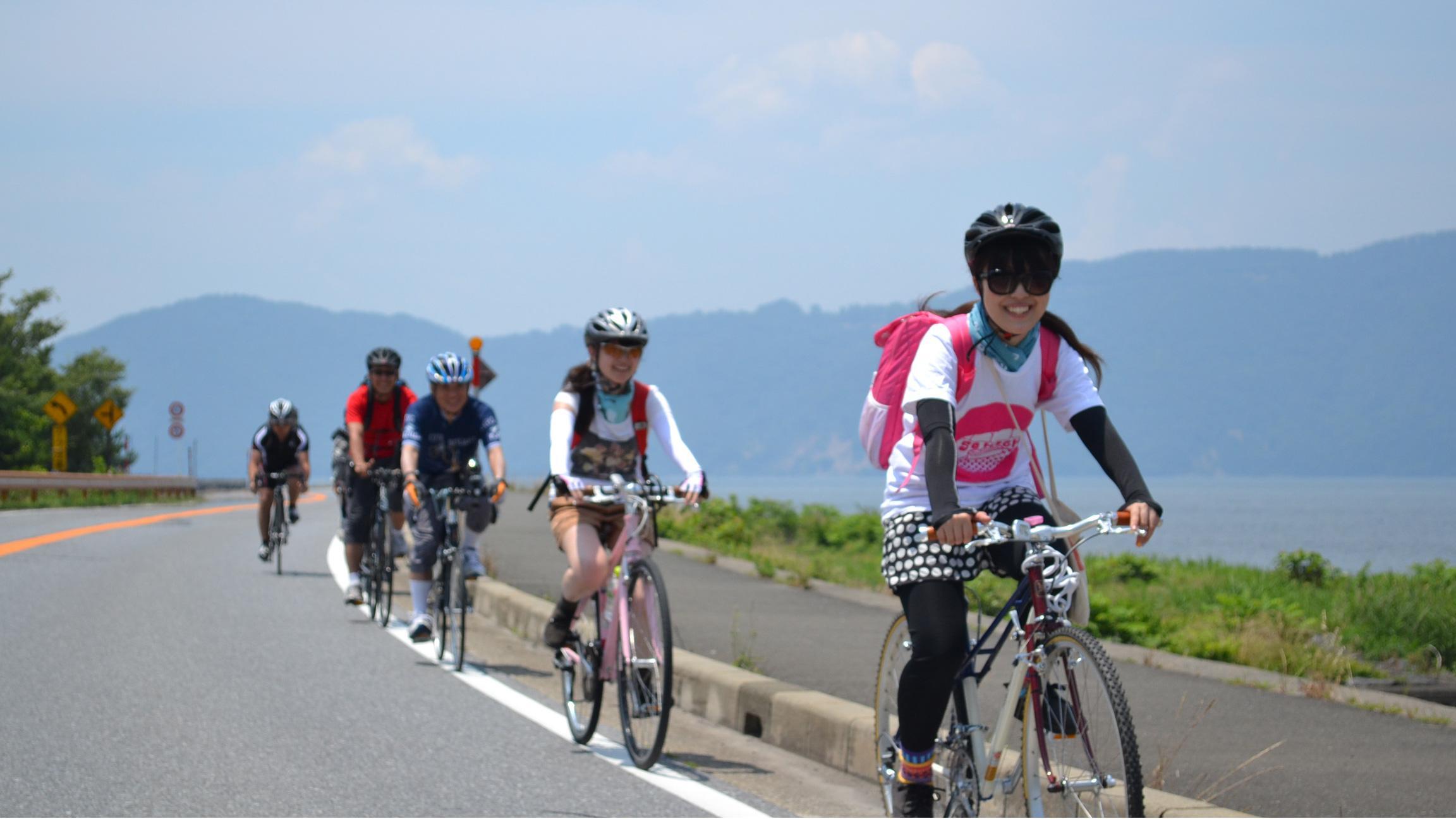 「びわ湖一周」の略称「ビワイチ」。滋賀県では、二酸化炭素を排出しない環境にやさしい交通手段である自転車による県内全域への周遊観光を推進しています。