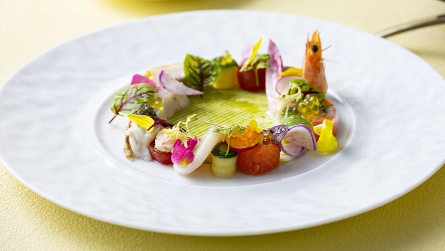 ホテル最上階レストランフランス料理 ボーセジュール(38F)では、ママ友会や女子会などのプチ記念日にぴったりなフレンチランチをご用意いたします。彩り豊かな前菜をはじめ、さまざまな味わいを一度にお楽しみいただけます。