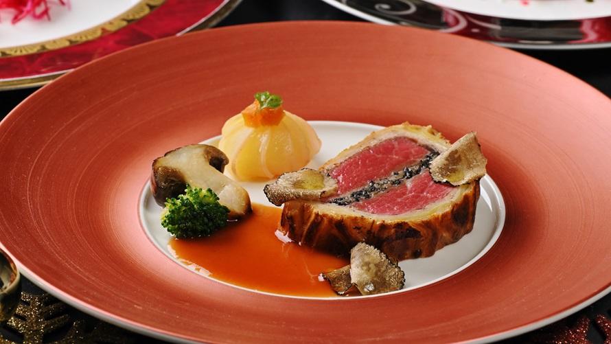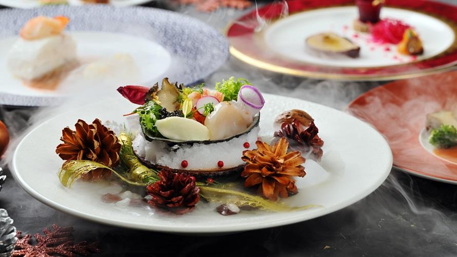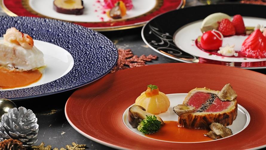 国際料理賞コンクール受賞歴をもつシェフ坂田が贈る、珠玉のクリスマスコース。メインには香ばしいパイに包まれた牛フィレ肉のローストをご用意いたします。ブッシュドノエルに見立てたフォアグラのテリーヌは、目の前で切り分けるカッティングサービスでご提供いたします。おふたりのクリスマスをより特別なものに。