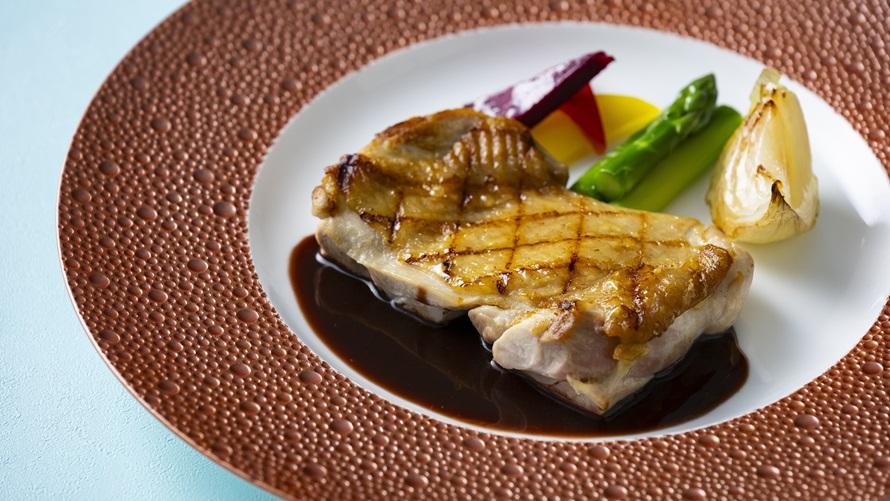 前菜は、近江の牛乳で作った自家製リコッタチーズや玉ねぎのケークサレなどとともに滋賀県産の生ハムをご堪能いただける一皿。メインディッシュはオマール海老のオーブン焼きを滋賀県産味噌香るカフェドパリ風バターでお楽しみいただけます。コースの締めくくりには、土山抹茶のアイスを添えたプラトー・ド・デセールを、全6種類のスイーツからお好きなだけお楽しみください。