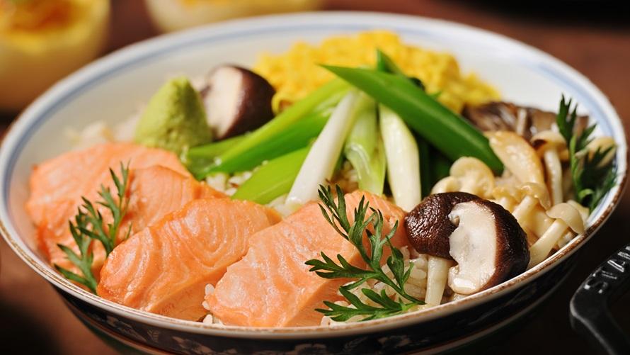 ■魚介のちらし寿司 ■京風おばんざい 各種 ■白飯(滋賀県産みずかがみ) ■滋賀県産味噌を使った味噌汁 ■餡かけおろしそば ■滋賀県産ビワマスを使った洋風アメノイオご飯 ほか