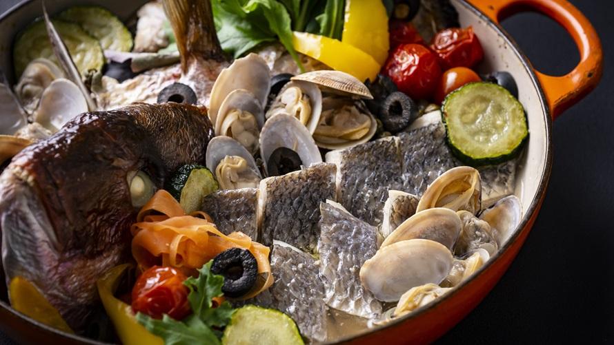 ■白身魚と浅利のアクアパッツァ 柚子胡椒風味