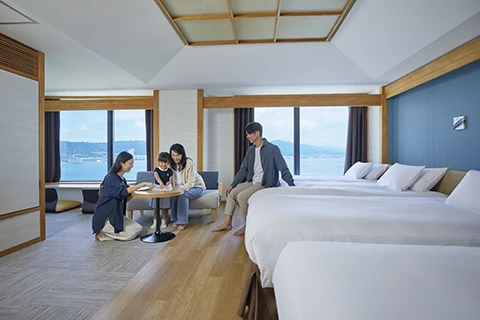 びわ湖の眺めが広がる客室で過ごすひとときは、