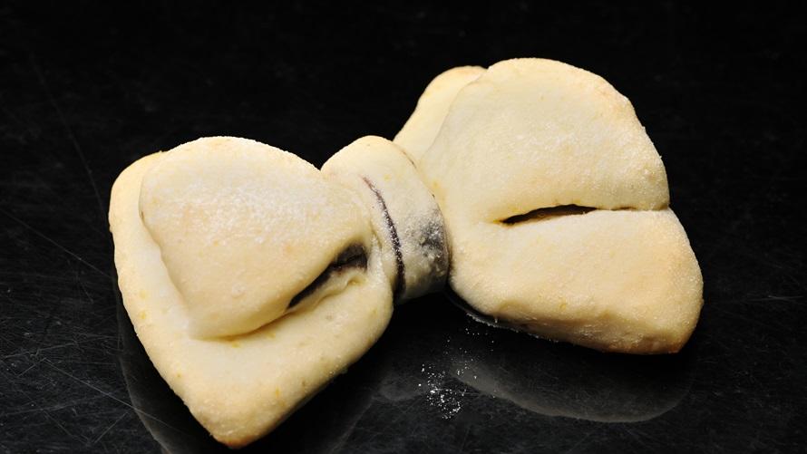 柚子を練り込んだもちもちの生地でチョコレートを包み、リボンの形に焼き上げた、見た目にもかわいいパンです。