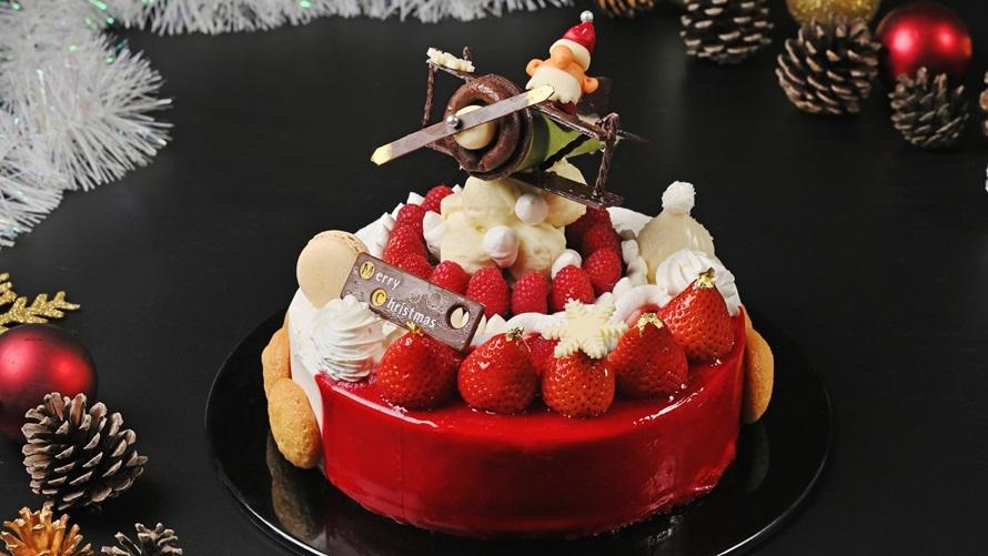 チョコレートでかたどった飛行機とサンタクロースを飾った、見た目も楽しいケーキです。パティシエの遊び心とこだわりが詰まっており、ご家族みなさまでお楽しみいただけます。