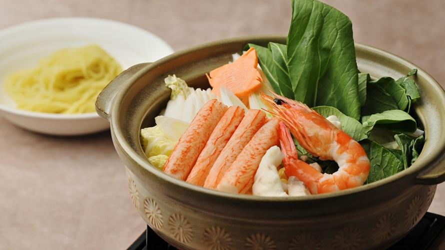 冬の味覚と大地の恵みが織りなす、この季節ならではのメニューをご用意いたしました。メインには、鶏の旨みを余すところなく引き出した白湯スープをベースに、蟹や魚介の豊かな旨みを堪能できる「蟹と海の幸の白湯鍋」をご用意いたします。