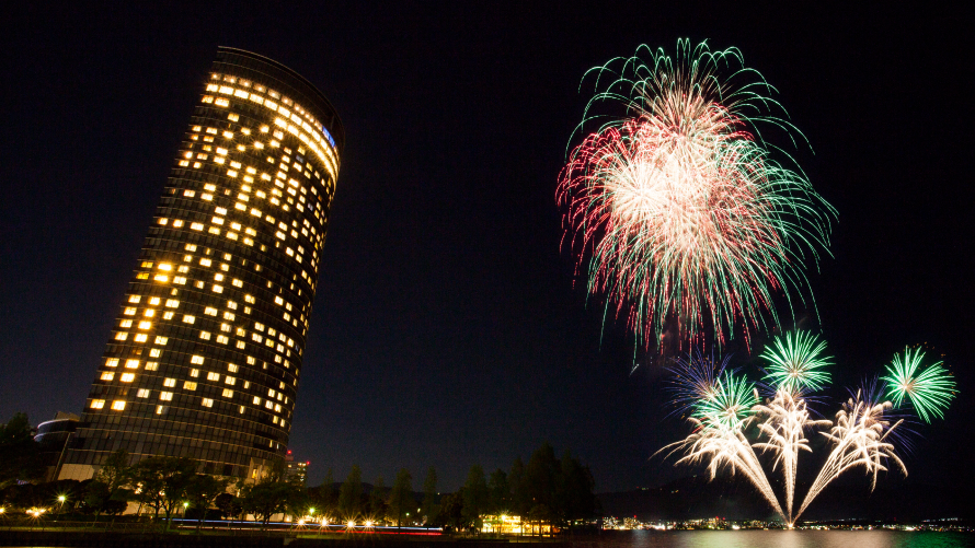 窓の外に広がる花火と夜景が織りなす絶景をお楽しみいただけるお日にち限定のご宿泊プラン。
