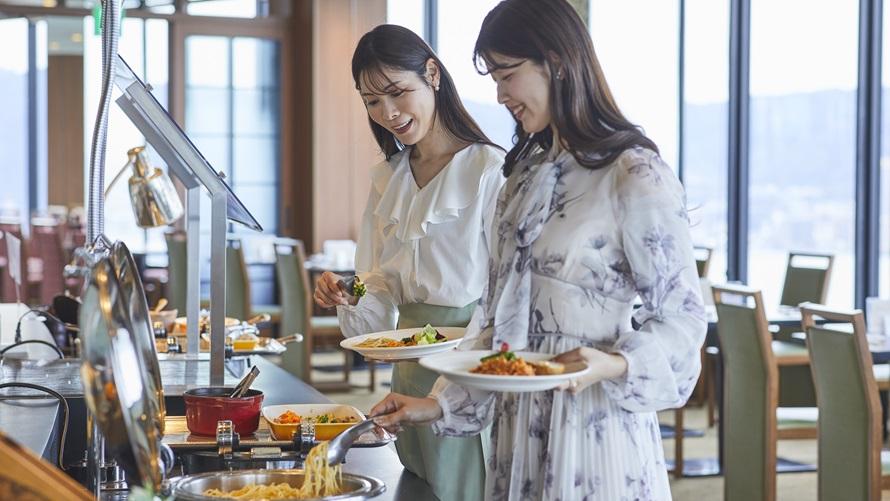 オープンキッチンならではのライブ感あふれる、開放的なブッフェダイニング。